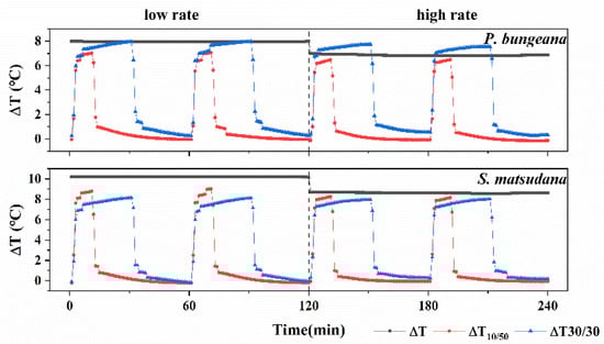 3.1. Tendency of Temperature Difference under Different Heating Modes