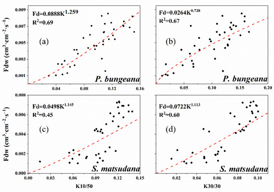 - Berdanier, A.B.; Miniat, C.F.; Clark, J.S. Predictive models for radial sap flux variation in coniferous, diffuse-porous and ring-porous temperate trees. Tree Physiol. 2016, 36, 932–941. [Google Scholar] [CrossRef]
