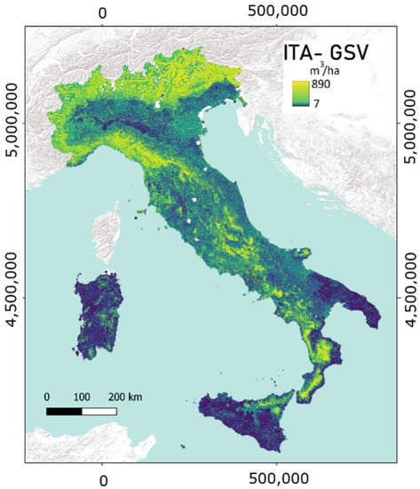 Italian National Growing Stock Map with a resolution of 23 m × 23 m [26].