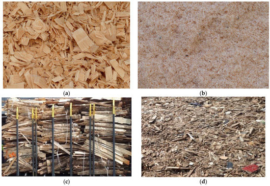 - Recycled wood: Recycled wood fibre—Grade A and B recycled wood is sourced from both commercial wood waste and civic amenity sites (Figure 1d).