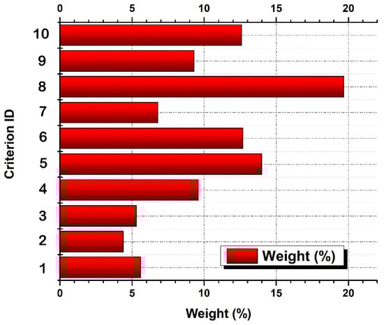 Table 3 presents the index CA, for the different number of criteria forming the calculation matrix. A consistency ratio of less than 0.10 was considered acceptable for this case study. For more detail about AHP implantation, the reader is invited to read the studies in [28,69].