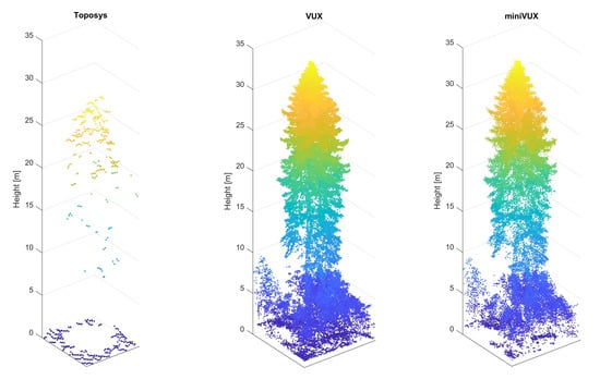 Ten miniVUX and Toposys point clouds with respective field reference data are published in []. Those using these data are acknowledged to cite this article. This article also gives the needed details of the sensors used and field data collected.