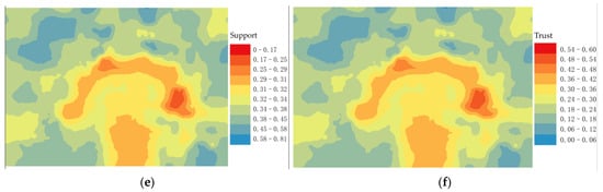 On the contrary, it is called a counter-example event. We extracted the distribution location map of the positive example event (Figure 6d) from the association degree value (Figure 6c). According to the Equations, we have calculated the spatial support degree (Figure 6e) and spatial trust degree (Figure 6f).