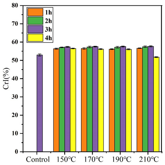 CrI of different bamboo samples after nitrogen heat treatment.
