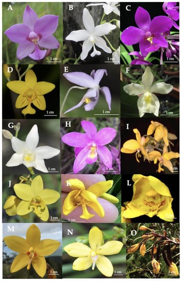 - Chase, M.W.; Cameron, K.M.; Freudenstein, J.V.; Pridgeon, A.M.; Salazar, G.; Van Den Berg, C.; Schuiteman, A. An updated classification of Orchidaceae. Bot. J. Linn. Soc. 2015, 177, 151–174. [Google Scholar] [CrossRef]