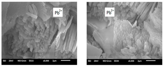 Lead oxide can take a wide variety of forms, including nanoplates, nanodendrites [64], nanorods [65], and sheets or tubes [66]. Pattern development and inter-particle interaction typically have a strong relationship. Stripes, clusters, and other very diverse morphologies result from the competition between repulsive and attractive interactions between particles [67]. Certainly, the chemistry of the carbonaceous materials’ surface affects the way that Pb binds and interacts with them.