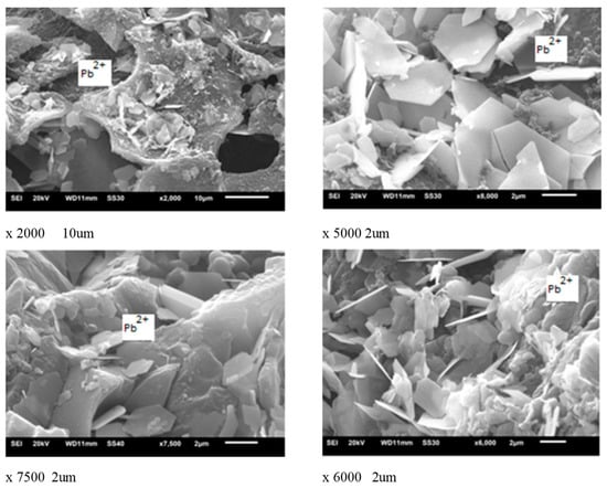 SEM image of Hc—Pb2+ loaded (lamellar lead oxide).