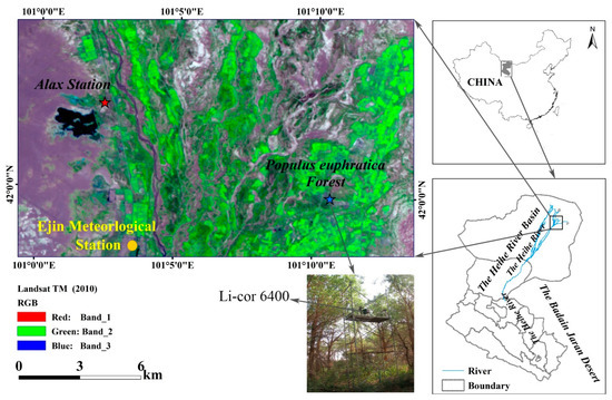 - Lang, P.; Ahlborn, J.; Schäfer, P.; Wommelsdorf, T.; Jeschke, M.; Zhang, X.M.; Thomas, F.M. Growth and water use of Populus euphratica trees and stands with different water supply along the Tarim River, NW China. For. Ecol. Manag. 2016, 380, 139–148. [Google Scholar] [CrossRef]