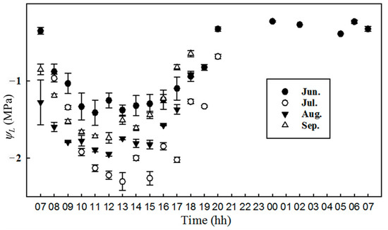 - Wang, H.Z.; Han, L.; Xu, Y.L.; Niu, J.L.; Yu, J. Effects of soil water gradient on photosynthetic characteristics and stress resistance of Populus pruinosa in the Tarim Basin, China. Acta Ecol. Sin. 2017, 37, 432–442. (In Chinese) [Google Scholar] [CrossRef][Green Version]