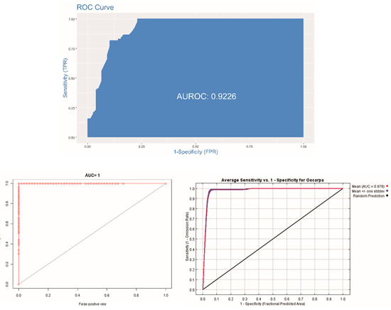 We calculated all models’ sensitivity, specificity, and concordance indices as measures of goodness of fit. These metrics were calculated on the validation sample separated for validation purposes and independent from the training set. Later, we estimated the overall accuracy metric from the confusion matrix of each model. Additionally, we used all models’ calculated receiver operating characteristic (ROC) curves and the true skill statistic (TSS) for comparison purposes. Next, these two metrics were used to evaluate model performance according to previous studies [36,37,38]. It is worth noting that TSS has become popular due to its simplicity (sensitivity + specificity − 1) but robust and intuitive measure of the performance of species distribution models [38].