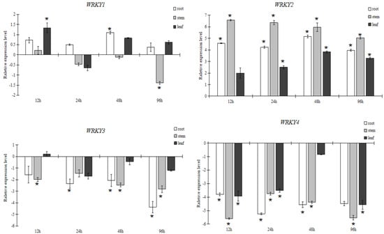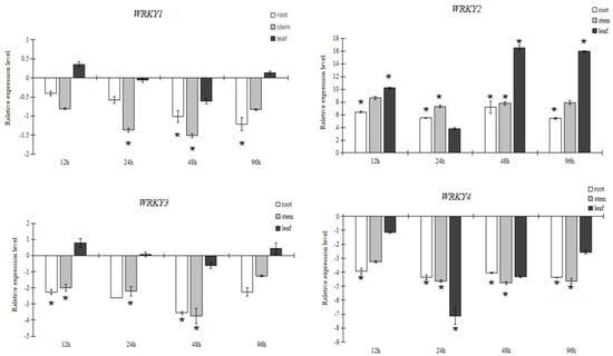 3.2.3. Expression Pattern Analysis of WRKY in Response to NaHCO3 Stress