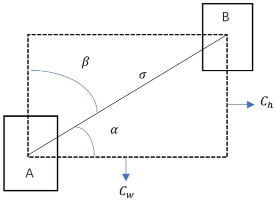 In the above equation, is the loss, where A represents the prediction frame and B represents the real frame. is the distance between the centroids of box A and box B, is the diagonal length of the minimum enclosing rectangle of box A and box B, is the similarity of the aspect ratio of box A and box B, and α is the influence factor of . Λ is the angular loss that allows the prediction frame to move faster to the horizontal or vertical line where the true frame is located. The angle cost scheme in the loss function is shown in Figure 4. is the distance loss. Ω is the shape loss. is the height difference between the center point of the real frame and the predicted frame, and is the distance between the center point of the real frame and the predicted frame.