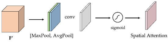 The global maximum pooling and global average pooling are performed on the feature maps output by the channel attention module. In addition, the two binary vectors after pooling are channel spliced. Then the convolution operation descending and sigmoid activation function operation is performed. The final feature map of the spatial attention module is obtained.