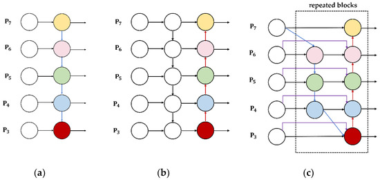 The structural design of FPN, PANet, and BiFPN. (a) FPN; (b) PANet; (c) BiFPN.