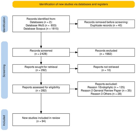 Preferred reporting items for systematic reviews and meta-analyses (PRISMA) flow diagram, generated using searches on the Web of Science (WoS) and Scopus databases. The figure was drawn using PRISMA2020 flow diagram R package [].