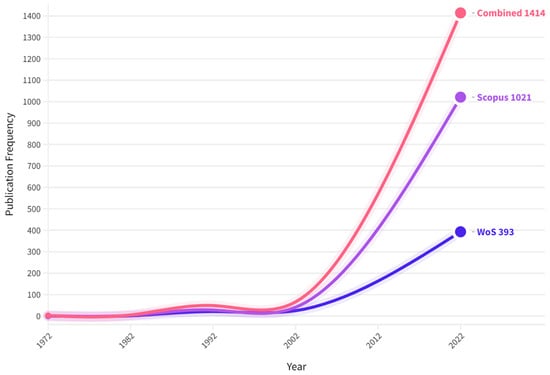 In this review, we compiled a total of 2428 articles from the years 1987 to 2022. Our analysis revealed that the field of mangrove microbiology exhibited an upward trend. To illustrate the increment of studies regarding microbial diversity within mangrove sediment, the combined database of WoS and Scopus publications were sorted by year, as shown in Figure 4. Interestingly there was a sudden increment in microbial diversity studies in the early 2000s, probably due to the advancement of metagenomics methods and techniques such as denaturing gradient gel electrophoresis (DGGE) and high-throughput sequencing (HTS), also known as next generation sequencing (NGS). The popularization of sequencing methods coalescing with molecular biological techniques has driven the capability to take microlevel biodiversity and its ecological structural composition from a given environmental sample to new heights. Hence, using metagenomics, the quantification of a given biocommunity’s dynamics and roles are made possible, while parsing the relationship with the corresponding environmental gradients and factors.