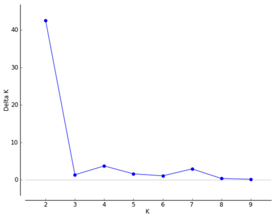 - Earl, D.A.; vonHoldt, B.M. STRUCTURE HARVESTER: A website and program for visualizing STRUCTURE output and implementing the Evanno method. Conserv. Genet. Resour. 2012, 4, 359–361. [Google Scholar] [CrossRef]