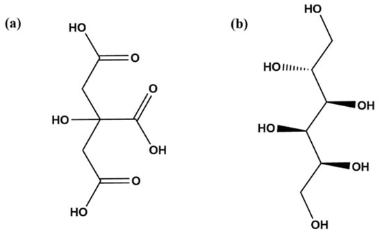 Chemical structure of (a) citric acid and (b) sorbitol.