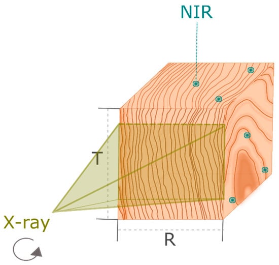 Both radial and tangential planes have been tested, as there is no agreement in the literature regarding which one gives better results for the determination of wood properties with NIR [,]. It has been found that, at the same wavelength range and pre-treatment method used, in most cases, the prediction power was better when the radial plane was tested to obtain data for the multivariate analysis. Therefore, all wavelength ranges and pre-processing methods which have been investigated in the radial plane are listed in Table 2.