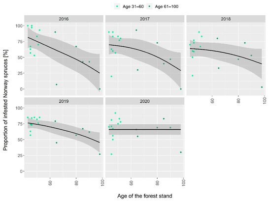 - Zýka, V.; Černý, K.; Strnadová, V.; Zahradník, D.; Hrabětová, M.; Havrdová, L.; Romportl, D. Predikce Poškození Porostů Smrku Pichlavého Kloubnatkou Smrkovou v Krušných Horách, 1st ed.; Výzkumný Ústav Silva Taroucy Pro Krajinu a Okrasné Zahradnictví, v.v.i.: Průhonice, Czech Republic, 2018; p. 47. ISBN 978-80-87674-29-1. [Google Scholar]