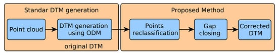 In the following sections, we describe the point-cloud re-classification and gap closing in more detail because they are the key steps of the method to obtain accurate DTM.