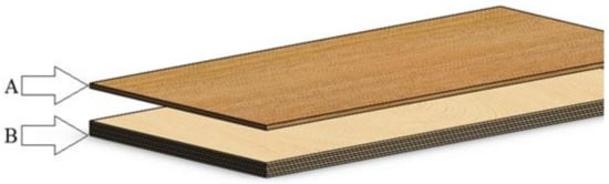Structure of the flooring material: A—the face layer made of oak slat, B—the plywood-like base layer made of Scots pine veneers.