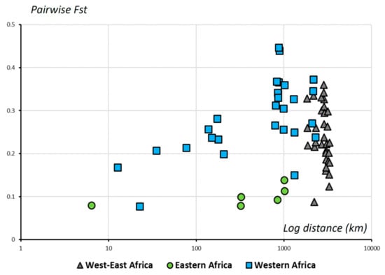 - Hardy, O.J.; Charbonnel, N.; Fréville, H.; Heuertz, M. Microsatellite Allele Sizes: A Simple Test to Assess Their Significance on Genetic Differentiation. Genetics 2003, 163, 1467–1482. [Google Scholar] [CrossRef]