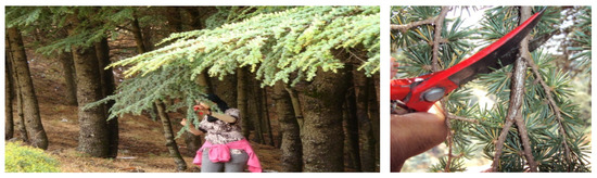 Survey and collection of pine processionary moth (Thaumetopoea pityocampa) egg mass in twig of cedar in Chréa National Park.