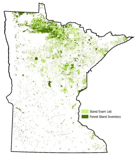 - Minnesota Department of Natural Resources. Sustainable Timber Harvest: Development of the DNR 10-Year Stand Exam List; Minnesota Department of Natural Resources: St. Paul, MN, USA, 2020. [Google Scholar]