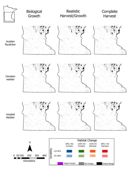 Chicago/Turabian StyleGifford, Tyler S., John M. Zobel, and Lindsey M. Shartell. 2022. "Modeling Potential Changes in Rare Species Habitat from Planned Timber Harvest in Minnesota, USA" Forests 13, no. 2: 216. https://doi.org/10.3390/f13020216