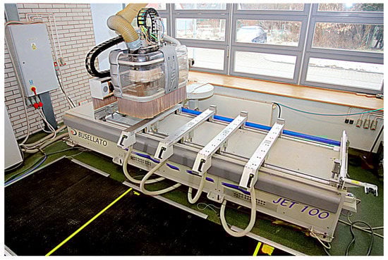 The standard CNC (computer numerical control) router (Busellato Jet 100), which was used during the experimental tests.