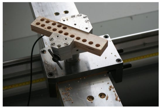 The technique of wood drilling has a long history that dates to the Upper Paleolithic Period (about 40,000 years ago) [] with numerous developments made in this field during these centuries/millennia []. Drilling is still one of the basic cutting processes that are of particular interest to wood science and technology professionals. It is in fact, from a practical standpoint, quite impossible to imagine the manufacturing of furniture and other interior elements or construction of wooden buildings without effective drilling techniques. It is also worth noting that drilling can be used for more than just making holes in wood (or wood-based boards) for construction purposes. There are many other areas in which drilling can be very useful from a practical point of view (i.e., in semi-destructive testing of various physical and technological properties of wood or wood-based materials). As a result, considerable (and very diverse thematically) research has been recently carried out on drilling. This ensures constant development—new research trends constantly appear in scientific journals. The fundamental and traditional research direction (which resulted in a significant development of practical knowledge), was to study the problem of increasing the hole quality. These studies most often focused on the delamination factor [] and surface roughness [,] in wood-based panel drilling. Moreover, the drill deflection problem (which is the main cause of the hole position error) has recently been analyzed in an innovative way [,,].