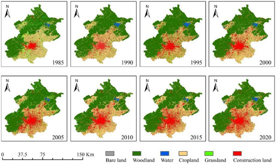LULC maps from 1985 to 2020 in Beijing.