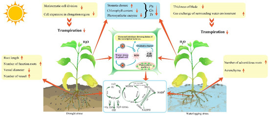 - Zhang, Y.; Liu, G.; Dong, H.; Li, C. Waterlogging stress in cotton: Damage, adaptability, alleviation strategies, and mechanisms. Crop J. 2021, 9, 257–270. [Google Scholar] [CrossRef]