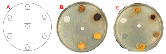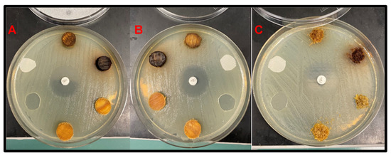(A) Solid disc samples with E. coli; (B) Veneer disc samples with E. coli; (C) Sawdust samples with E. coli.