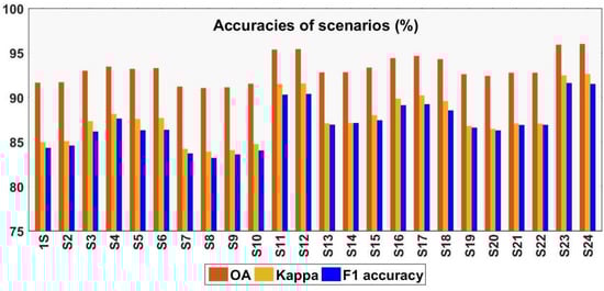 The highest classification accuracy results of scenarios using Sentinel-2 (S12) and Landsat-8 (S24).
