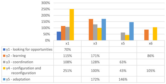 Although we observed a positive impact of resources on the adaptability of the State Forests Holding in four (x1, x3, x5, and x6) out of the seven analyzed categories of resources (see Figure 1), the obtained results allow us to argue that the chances of maintaining and developing the ability to adapt to the constantly changing environment are particularly high in the group of forest districts developing: