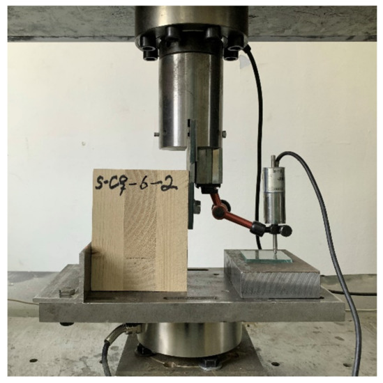 As shown in Figure 8, the screwed connection specimen was anchored to the testing machine with a piece of steel angle, and the compression load was applied at a rate of 1 mm/min. The load was measured with a load cell, and the relative displacement between the CLT member and the steel plate was measured with a LVDT.