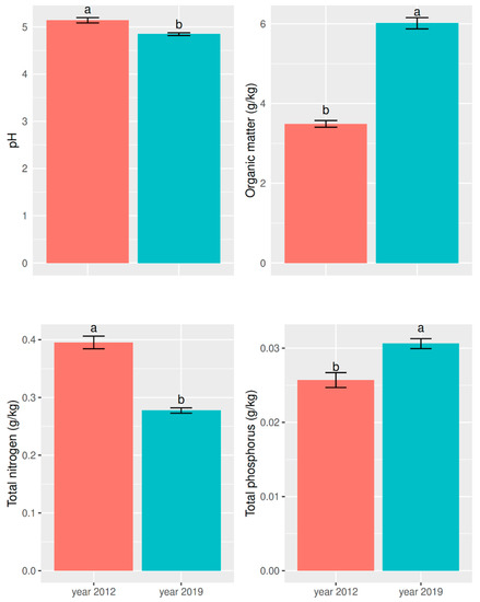 - Deyn, D.E.; Raaijmakers, G.B.; Van, C.E.; Der Putten, W.H. Plant community development is affected by nutrients and soil biota. J. Ecol. 2004, 92, 824–834. [Google Scholar] [CrossRef]