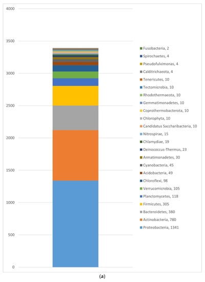 - Baldrián, P.; Kolarik, M.; Stursova, M.; Kopecky, J.; Valaskova, V.; Vetrovsky, T.; Zifcáková, L.; Snajdr, J.; Ridl, J.; Vlcek, C.; et al. Active and total microbial communities in forest soil are largely different and highly stratified during decomposition. ISME J. 2012, 6, 248–258. [Google Scholar] [CrossRef] [Green Version]