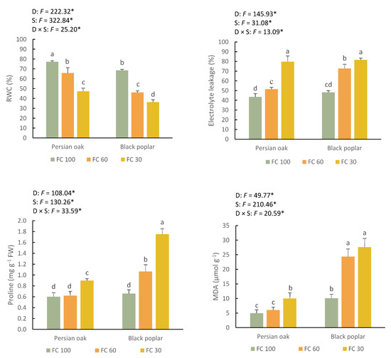 APA StyleKarimi, A., Tabari, M., Javanmard, Z., & Bader, M. K.-F. (2022). Drought Effects on Morpho-Physiological and Biochemical Traits in Persian Oak and Black Poplar Seedlings. Forests, 13(3), 399. https://doi.org/10.3390/f13030399