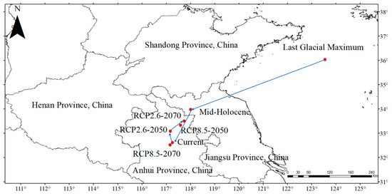 Since the Quaternary Period (from 2.58 Ma to now), the drastic changes in the earth’s climate had an important impact on the current distribution pattern of species [1]. According to the sporopollen data, under the background of global cooling during the last glacial maximum (LGM), the vegetation types in Eurasia and North America retreated to the equator, and the forest area decreased and fragmented to varying degrees [2]. In the recent warm period (mid-Holocene), due to the high temperature and humidity, the forest belt in the northern middle latitude of Eurasia moved slightly northward, and the warm temperate evergreen broad-leaved forest and mixed forest in China also moved northward [2,3]. Obviously, climate has far-reaching impacts on the distribution range of species and is a key factor determining the distribution of species on a large scale [4].
