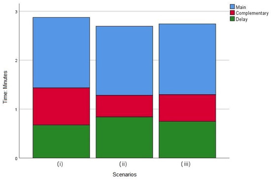 Figure 4. Time consumption of work element for scenarios (i) and (ii). The boxes include the variability of the data between the 25th and the 75th percentiles. The horizontal black line represents the median. Whiskers are the largest and smallest values that are not outliers.