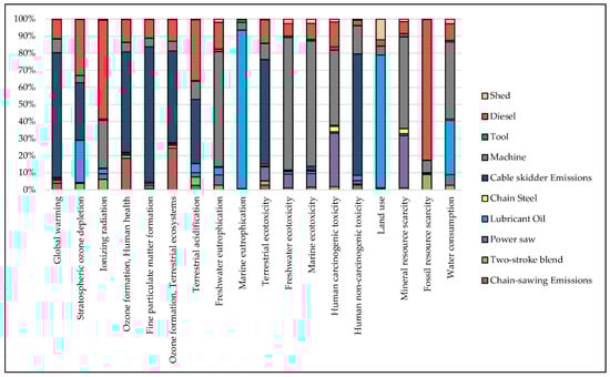 Figure 8. Contribution analysis related to scenario (i), cable skidder.