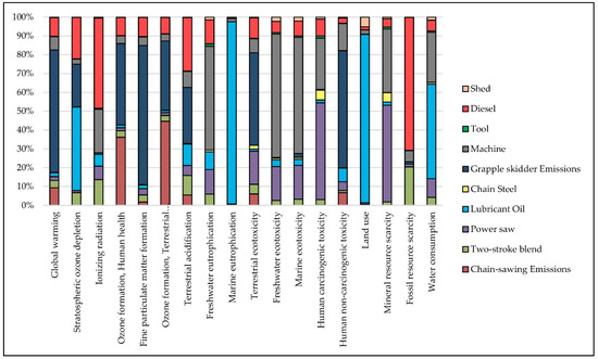 Figure 9. Contribution analysis related to scenario (ii), grapple skidder.