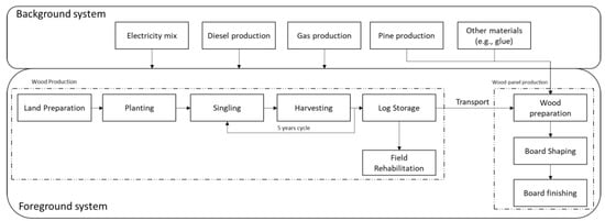 Summary of system boundaries for the case study of wood panel boards.