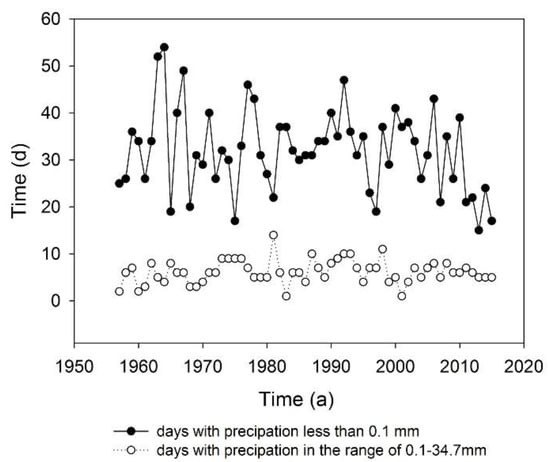 Precipitation days in different years in study area.