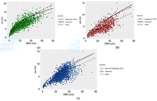 Raptis, D.I.; Kazana, V.; Kechagioglou, S.; Kazaklis, A.; Stamatiou, C.; Papadopoulou, D.; Tsitsoni, T. Nonlinear Quantile Mixed-Effects Models for Prediction of the Maximum Crown Width of Fagus sylvatica L., Pinus nigra Arn. and Pinus brutia Ten. Forests 2022, 13, 499. https://doi.org/10.3390/f13040499