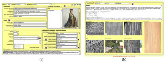 The data entered were subsequently processed based, in particular, on the identified timbers, which were put in relation to the geographical–cultural area of origin of the artwork, with the historical period in which the artefact was created, and with the thickness of the preparatory layer.