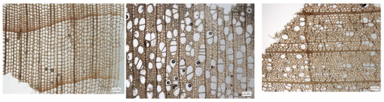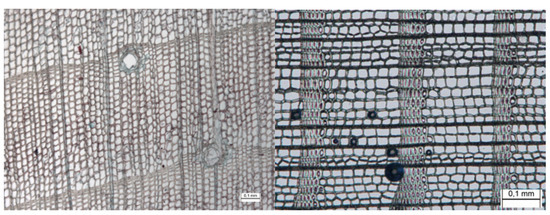 Observations of the cross-sections in Figure 4 and Figure 8 reveal an understanding of the anatomical differences between softwoods and hardwoods, as well as within hardwoods.